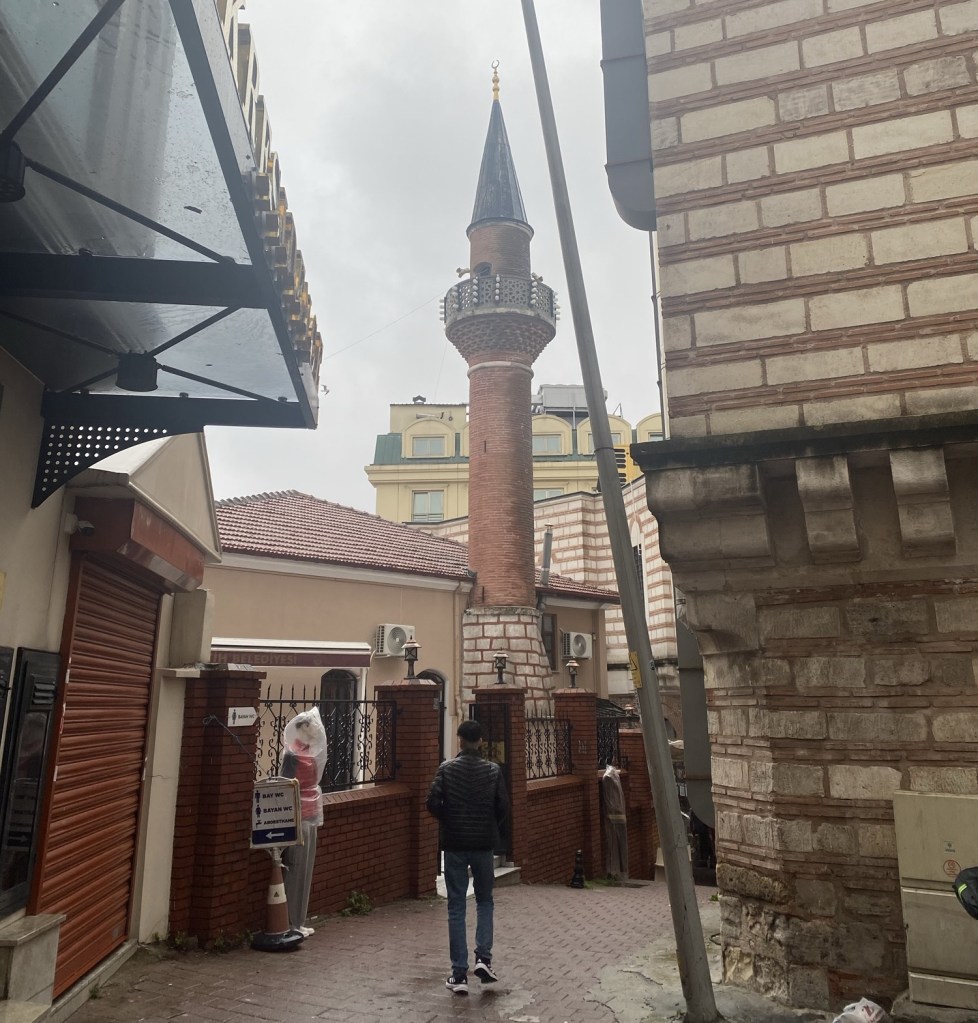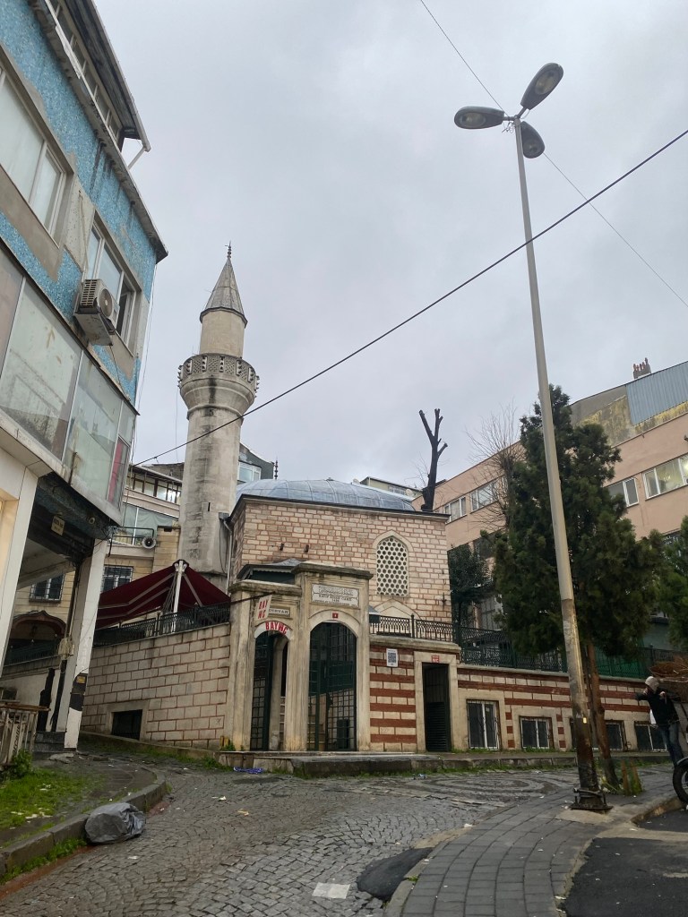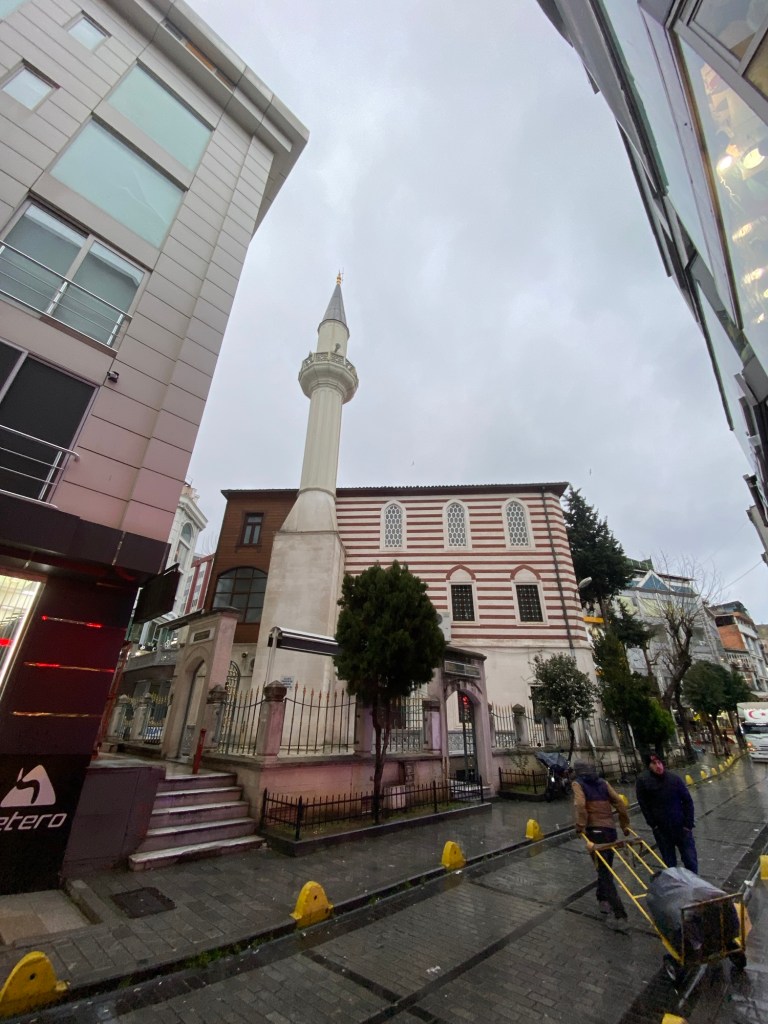 Her ikisi de sokak arasında kendinden büyük binaların arasında kalmış minik camiiler. Tıpkı Yakup Ağa Camii gibi. Biri çatılı, diğeri kubbeli. İstanbul’da bu tipte camii örneği oldukça fazla. İrili ufaklı sokak aralarında farklı yapılarda camiiler görmek mümkün. İki camiinin avlusuna girerek biraz vakit geçirdikten sonra başladığım nokta olan Tiyatro Caddesine geri dönüyorum.